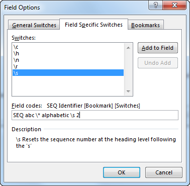If you assigned the wrong category, just change the “\c” number to the correct one. The numbers correspond to the position of each category in the Categories dropdown in the dialog box (or you can examine another field code to find the correct number).